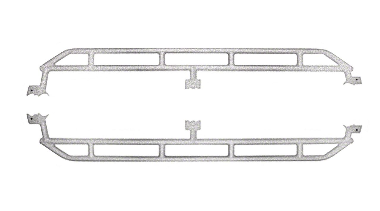 Construction and Appearance. Built from 2-inch, 0.134-inch wall thickness mild steel tubing, these rock sliders are CNC mandrel bent for precise fitment and structural integrity. The gray hammertone finish adds a rugged, corrosion-resistant layer, ensuring long-lasting protection against harsh environmental conditions.