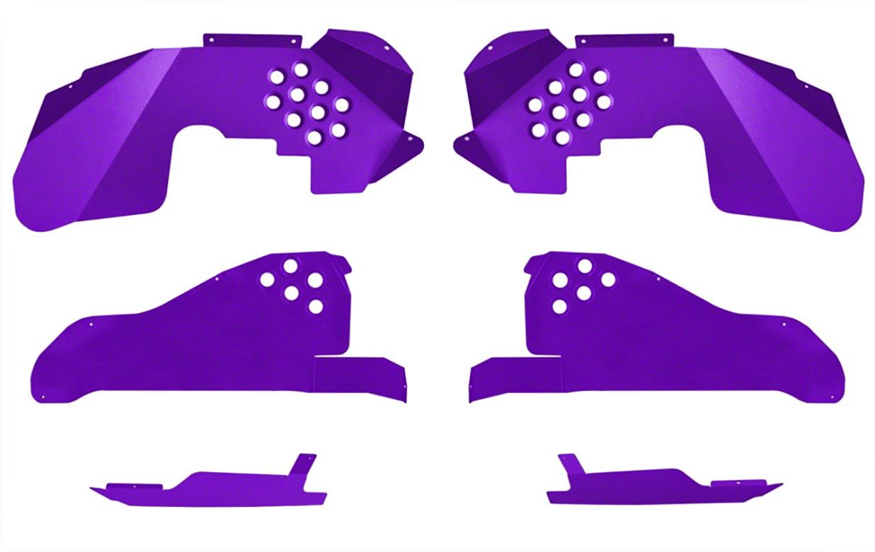 Dimple-Died Engine Compartment Upgrade. Elevate the protection and style of your Jeep Wrangler JK with the ACE Engineering Front and Rear Inner Fender Kit, featuring vibrant inserts in Sinbad Purple. Crafted from durable 5052 aluminum, known for its strength and corrosion resistance, this kit ensures your Wrangler's undercarriage is well-protected from debris and harsh elements.