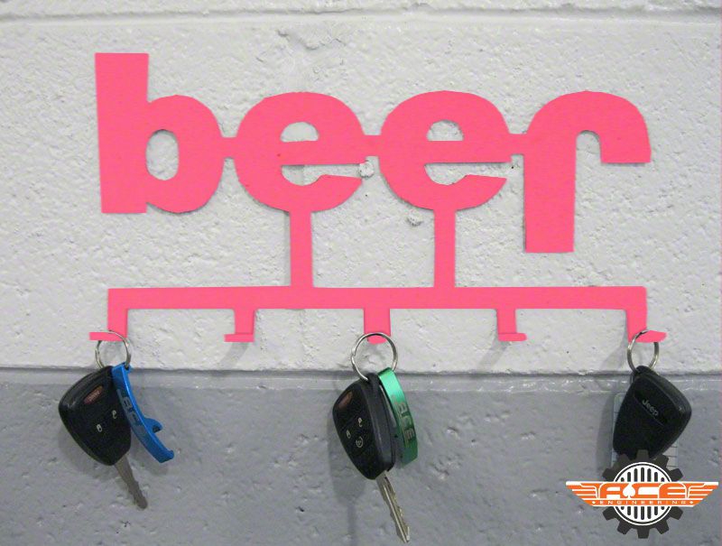 THE FAMOUS ACE BEER/JEEP T-SHIRT DESIGN IS NOW A KEYCHAIN HOLDER. MADE FROM .060 THICK MILD STEEL, IT MEASURES 12" X 6.5", HAS 5 KEYCHAIN HOOKS. GOOD FOR 8 HP!