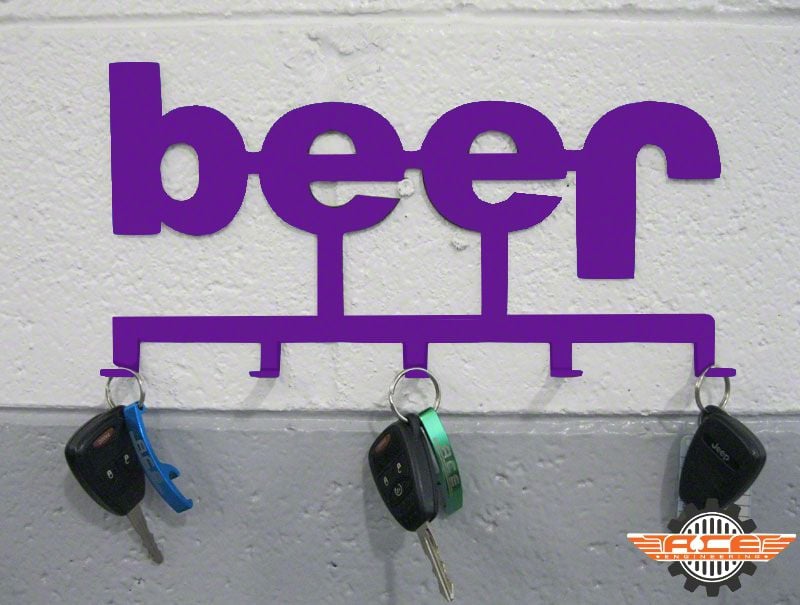 THE FAMOUS ACE BEER/JEEP T-SHIRT DESIGN IS NOW A KEYCHAIN HOLDER. MADE FROM .060 THICK MILD STEEL, IT MEASURES 12" X 6.5", HAS 5 KEYCHAIN HOOKS. GOOD FOR 8 HP!