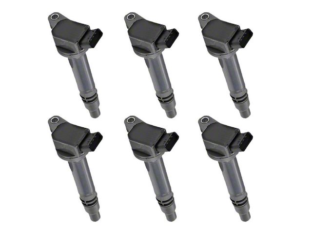 Construction and Appearance. Crafted primarily from high-quality rubber, these ignition coils are built to last and engineered for enhanced durability. The unique winding design reduces both size and weight compared to factory options, while the black finish adds a sleek, functional look under the hood.