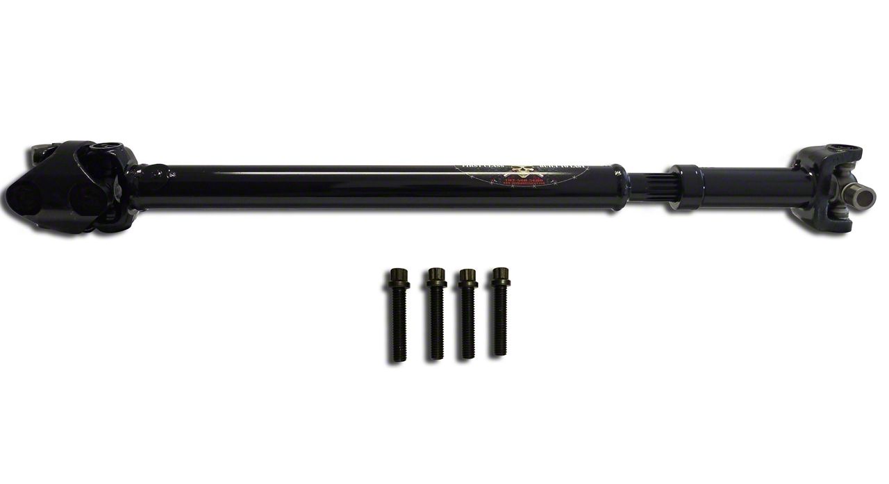 Off-Road Ready. This Front Driveshaft features ultra-strong DOM tubing with a 2 inch x 0.120 wall thickness. The comprehensive kit includes a sturdy 1330 CV shaft and solid 1330 U-joints, as well as 4 Grade 10 CV bolts. Once installed, this front driveshaft made specifically for your TJ Rubicon is ready to do battle in the roughest off-road environments.