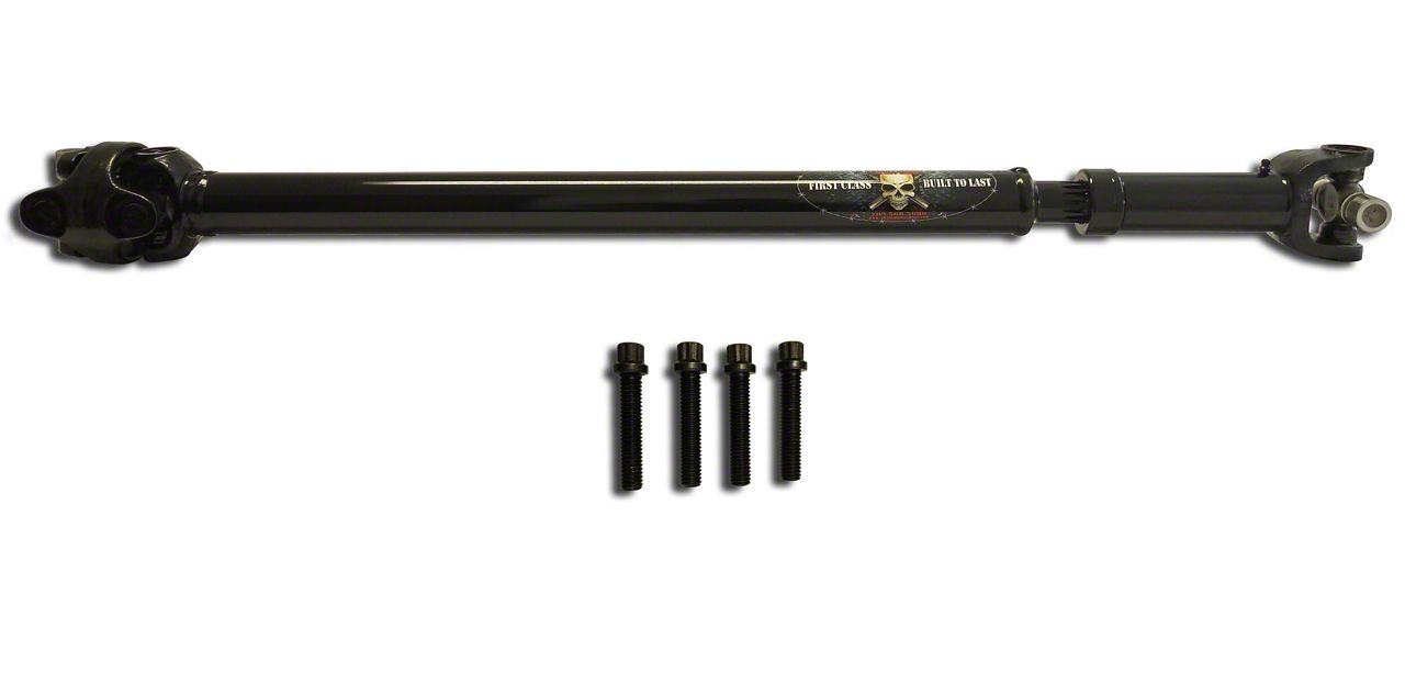 Heavy Duty. This Front Driveshaft has heavy duty tubing to satisfy even the most avid off-roader. The all-encompassing kit features a superior-grade 1310 CV shaft with a 2 inch x 0.120 wall thickness, Spicer greasable 1310 u-joints, and an American-made front 1310 transfer case output shaft yoke. Adams Driveshaft even includes a set of Grade 10 CV bolts in this system that is made to endure the extra stress that comes with bigger wheels and tires.