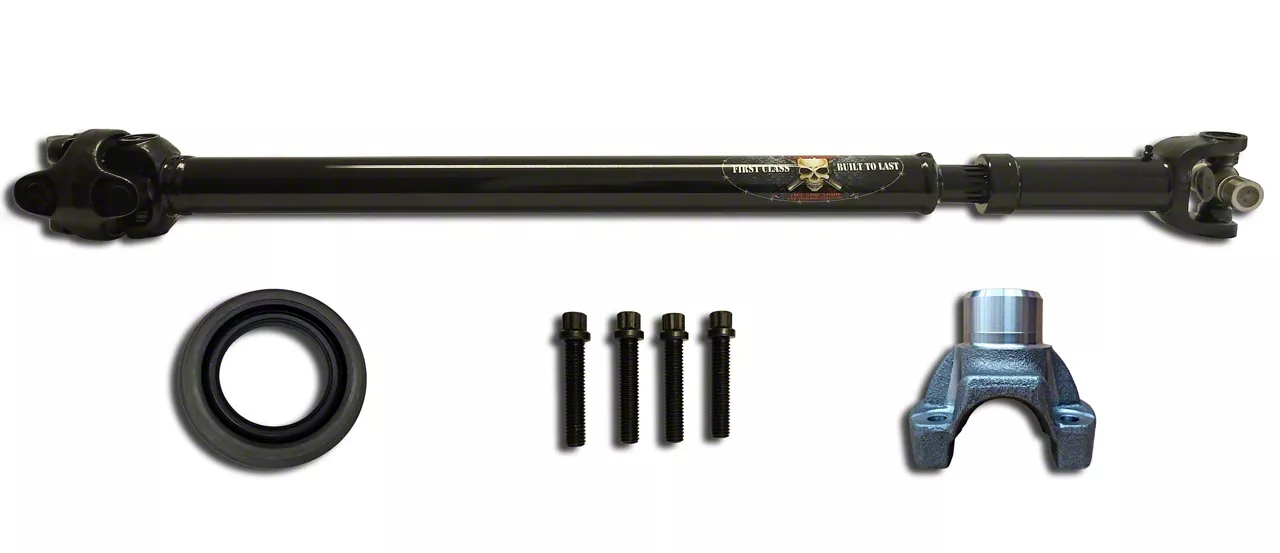 Durable, Tough Construction. Made from 2 inch X 0.120 wall tubing, this Heavy Duty driveshaft comes with spicer greaseable joints. It also features a flange that was made to fit on your Wrangler TJ’s front perfectly.