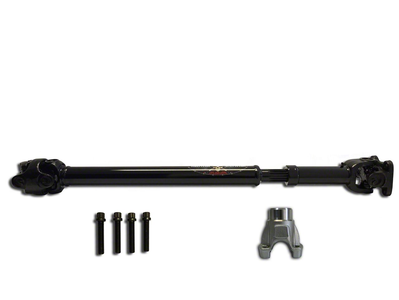 Premium-Quality Construction. With Adams Driveshaft advanced technology and superior craftsmanship, this Front Solid CV Driveshaft is built with excellent off-road durability. The 2-inch steel tubing is fortified by a black coating and is twice as strong as the factory counterpart. It includes solid, non-greaseable U-joints and heavy-duty flange for lasting functionality. Moreover, the splines are perfectly compatible with the OEM pinion flange for a hassle-free install.