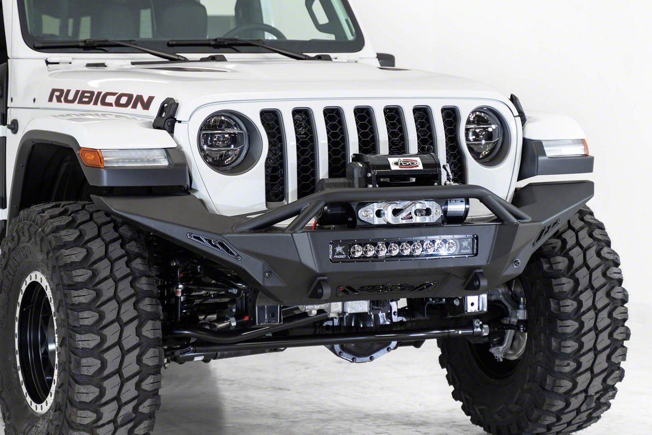 Application. This Addictive Desert Designs Stealth Fighter Winch Front Bumper with Top Hoop is designed to fit 2020-2025 Jeep Gladiator JT Launch Edition, Mojave and Rubicon models