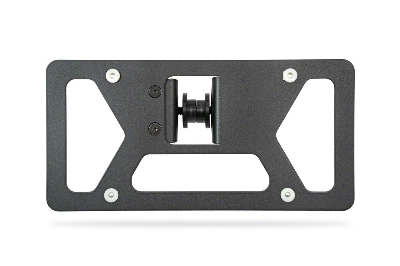 License Plate Mounting Solution. The Addictive Desert Designs Clevis Mounted License Plate Bracket provides a secure and efficient method to mount a front license plate on off-road bumpers. Designed for ease of removal, it enhances ground clearance during off-road driving and features a swivel mount to minimize damage from impacts with obstacles.
