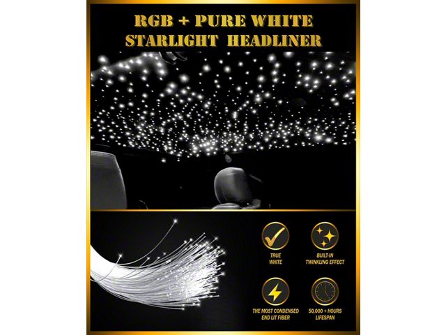 A Celestial Journey. Elevate your vehicle's interior into a mesmerizing celestial wonderland with the Adrenaline Offroad RGBW+T Starlight Headliner. This innovative product transforms your ordinary headliner into a breathtaking starlit canopy, captivating your senses and elevating your driving experience. With 1,100 individually addressable LEDs, the Starlight Headliner creates a stunning visual display that mimics the beauty of a starry night sky.