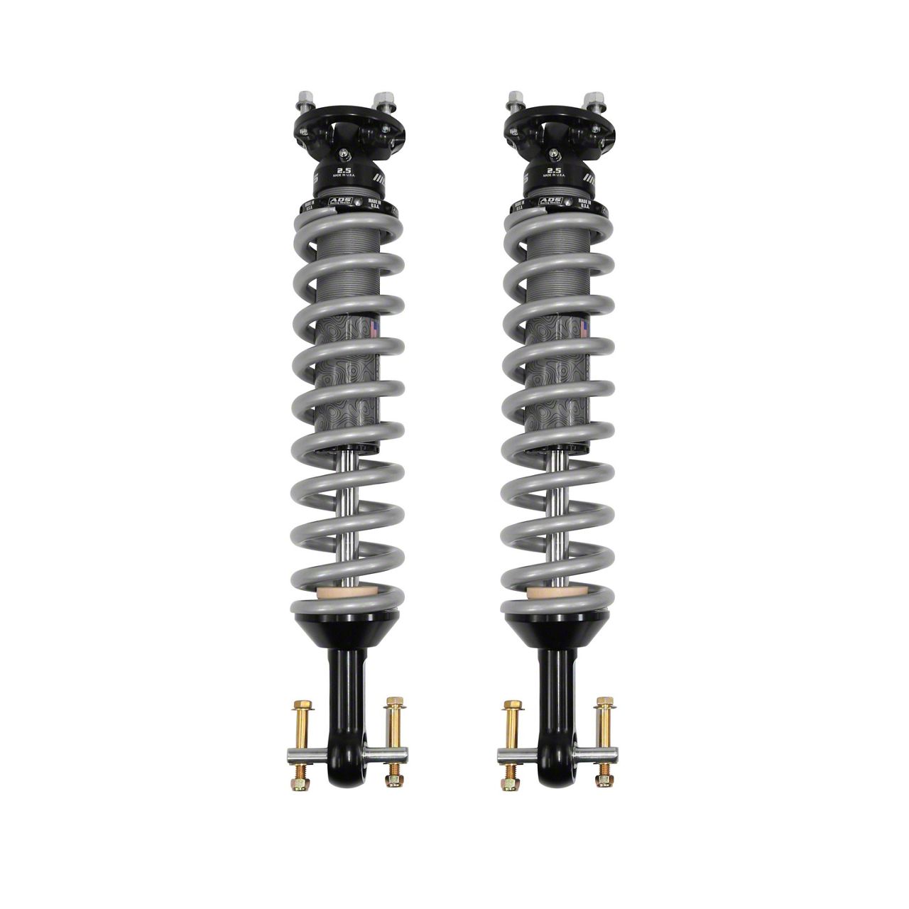 Construction and Appearance. These coil-overs feature a Metallic Gray, Glossy Black, and Polished Chrome finish for a standout look and long-lasting durability. Built with corrosion-resistant, hard-chrome plated steel shock shafts and machined 303 stainless steel spacers, every component is precision-made to ensure optimal performance. The large 2.5-inch bore shock body increases fluid capacity, enhancing cooling and reducing fade. With a sleek, professional appearance, these shocks are as tough as they look.