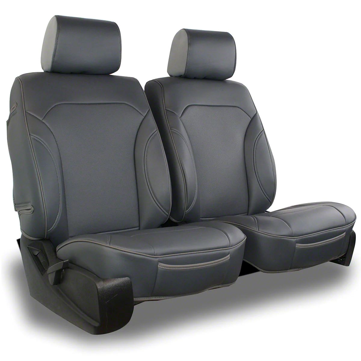 Aegis Cover Leatherette Low Back Bucket Seat Covers with Suede Plain Insert; Charcoal/Charcoal Piping (Universal; Some Adaptation May Be Required)