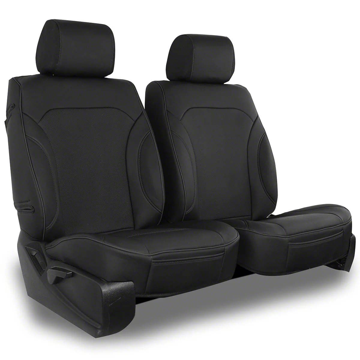 Modern Comfort and Defense. The Aegis Cover Leatherette Seat Cover provides understated luxury and reliable seat protection, featuring suede plain inserts and matte black finish piping for a smooth, contemporary appearance. Crafted from quality leatherette, this cover safeguards your bucket seat from dirt, scrapes, and daily wear while offering a comfortable, tailored fit. Designed for 2021-2026 Ford Bronco Sport models, it boasts a low back profile and a removable headrest for modern interior flexibility.
