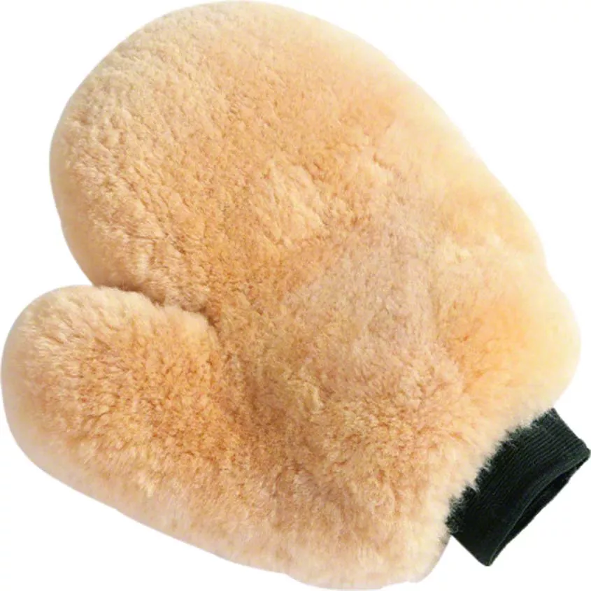 Construction and Appearance. Crafted from authentic sheepskin, the mitt is naturally soft, highly absorbent, and exceptionally durable. Its thick pile holds ample water and soap, allowing for smooth, scratch-free cleaning. The luxurious texture ensures it's safe on clear coats and ideal for regular detailing work.