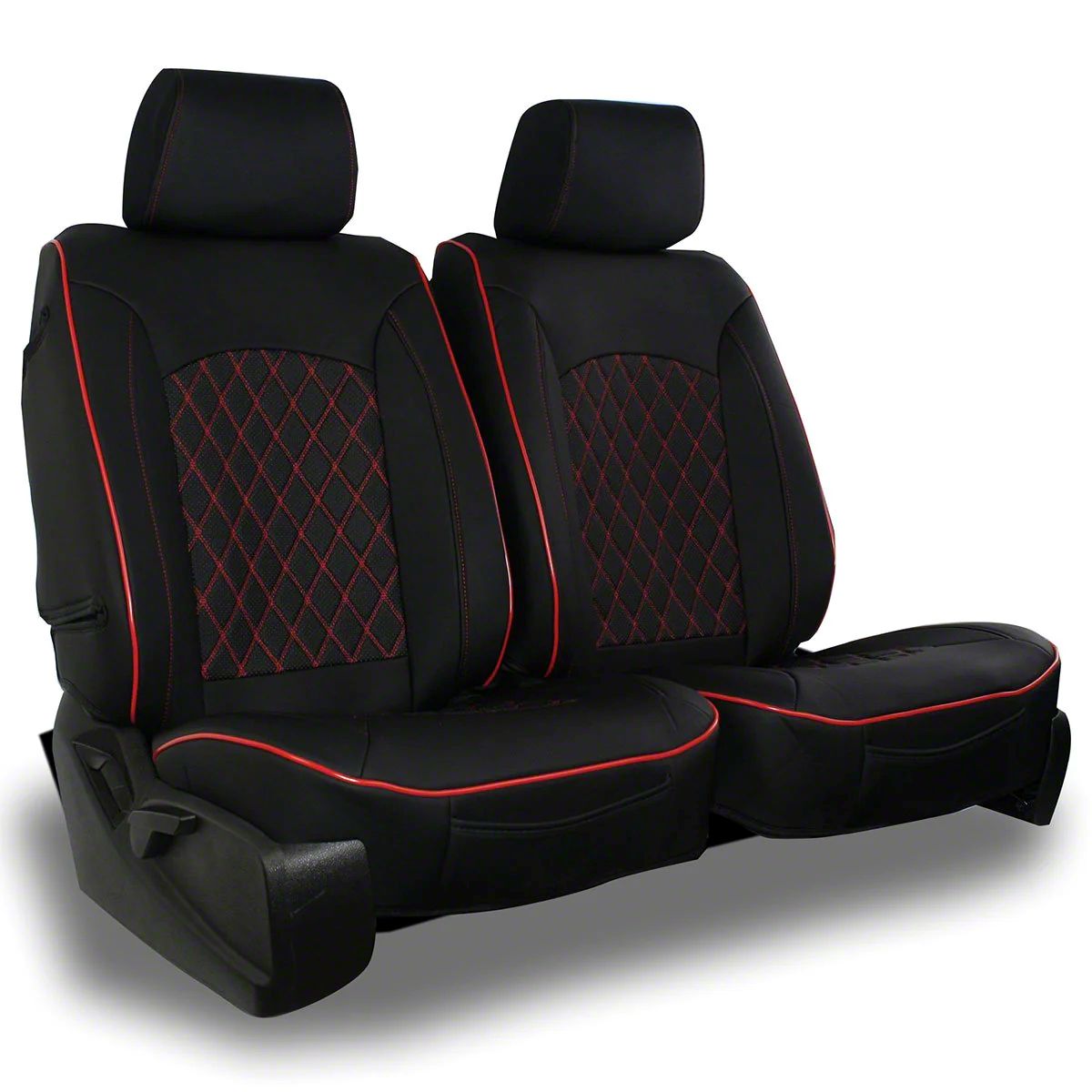 Aegis Cover Leatherette Low Back Bucket Seat Covers with Suede Diamond Insert; Black/Red Piping (Universal; Some Adaptation May Be Required)