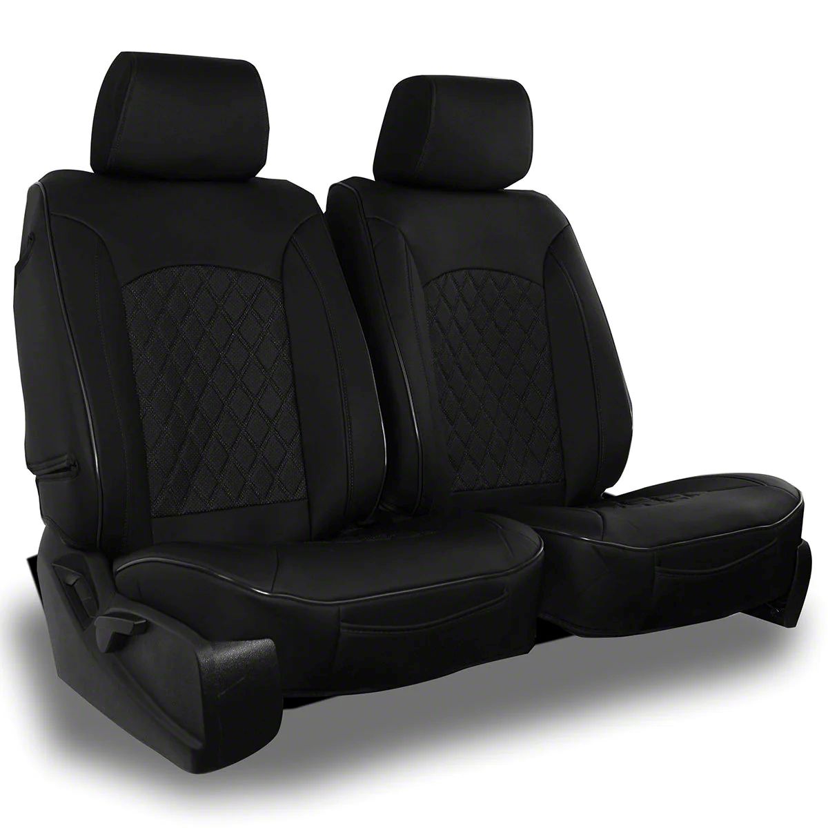 Aegis Cover Leatherette Low Back Bucket Seat Covers with Suede Diamond Insert; Black/Black Piping (Universal; Some Adaptation May Be Required)