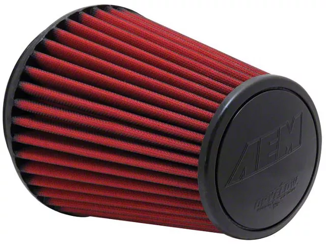 Tapered Cannister Shape. This red Tacoma filter is designed with a wide-diameter inlet side offering 6-inches of space and a narrower cap to create a tapered look. The filter is optimized for maximum airflow and can increase the power and performance of your vehicle when installed properly.