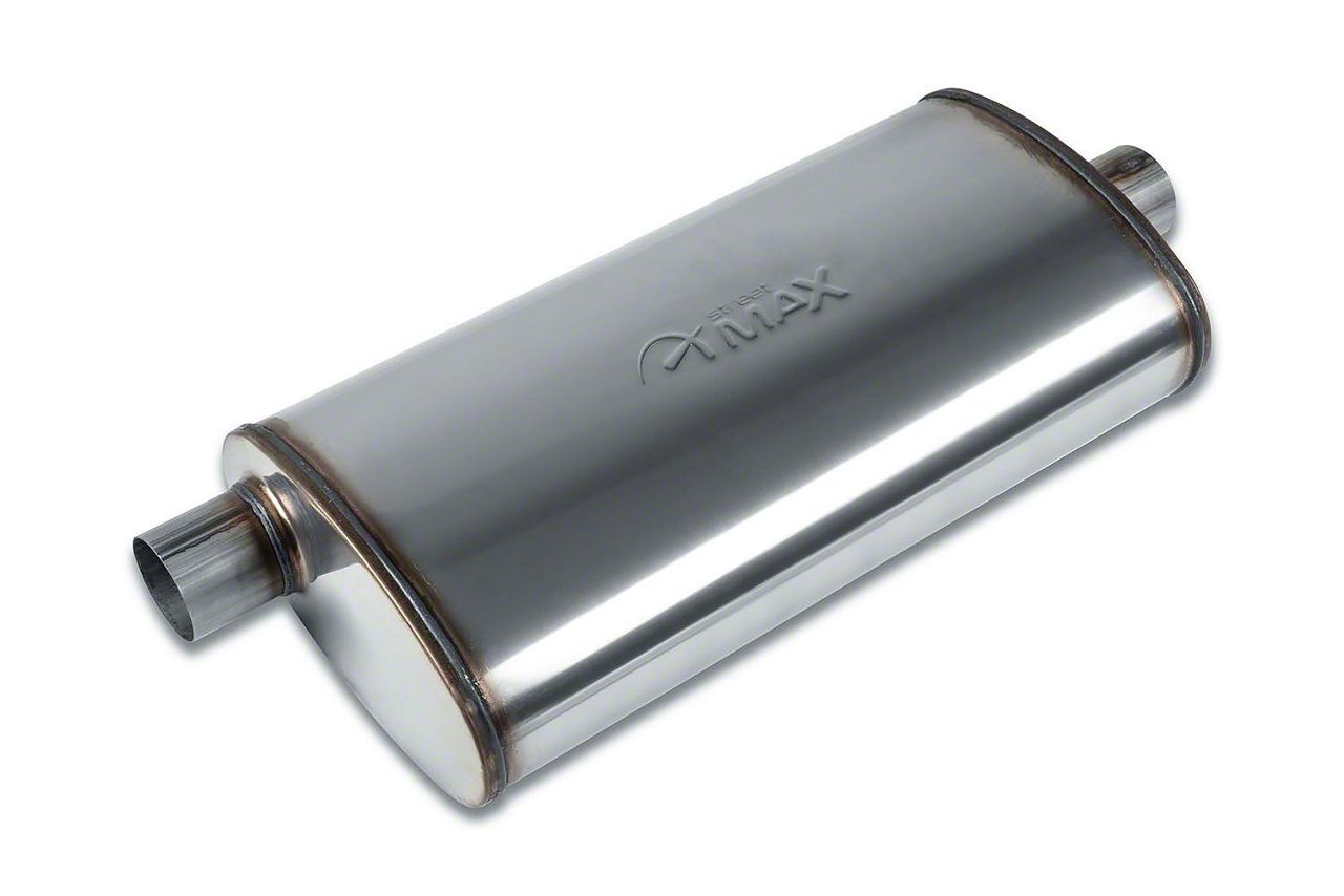 Style and Functionality. Experience enhanced performance and a refined exhaust note with the Street Series 5x11-inch Street Max Offset/Center Muffler. This muffler is designed to deliver improved horsepower and torque, making it a great addition to your vehicle's exhaust system. Its straight-through design is fully reversible, allowing you to fine-tune your exhaust configuration. The high-heat thermal mesh and effective drone reduction ensure a smooth and enjoyable driving experience with a mild tone that won't overwhelm your senses. With a 2.50-inch diameter inlet and offset/center configuration, this muffler offers both style and functionality, making it an ideal choice for those seeking an upgrade.