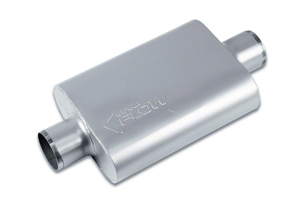 Improved Street Flow. Get better sound and performance for your car with this Street Series Street Flow 2 Chamber Aluminized Center/Center Muffler; 3-Inch Inlet/3-Inch Outlet. Sporting precision design, it offers more effective exhaust output and optimizes fuel burn for greater mileage and power.