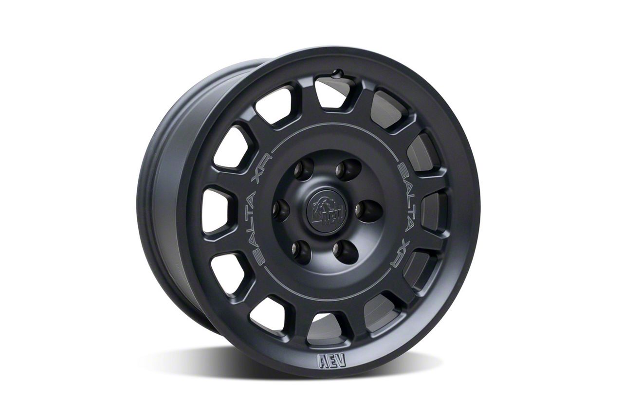 AEV Salta XR Matte Black 6-Lug Wheel; 17x8.5; 5mm Offset is a perfect blend of style and rugged design, making it a standout choice for those looking to enhance their vehicle's aesthetic appeal. Its bold, dark metallic finish pairs seamlessly with a wide variety of vehicle styles, offering both modernity and durability. Built by AEV, this wheel is designed to elevate your vehicle's appearance with its robust presence.