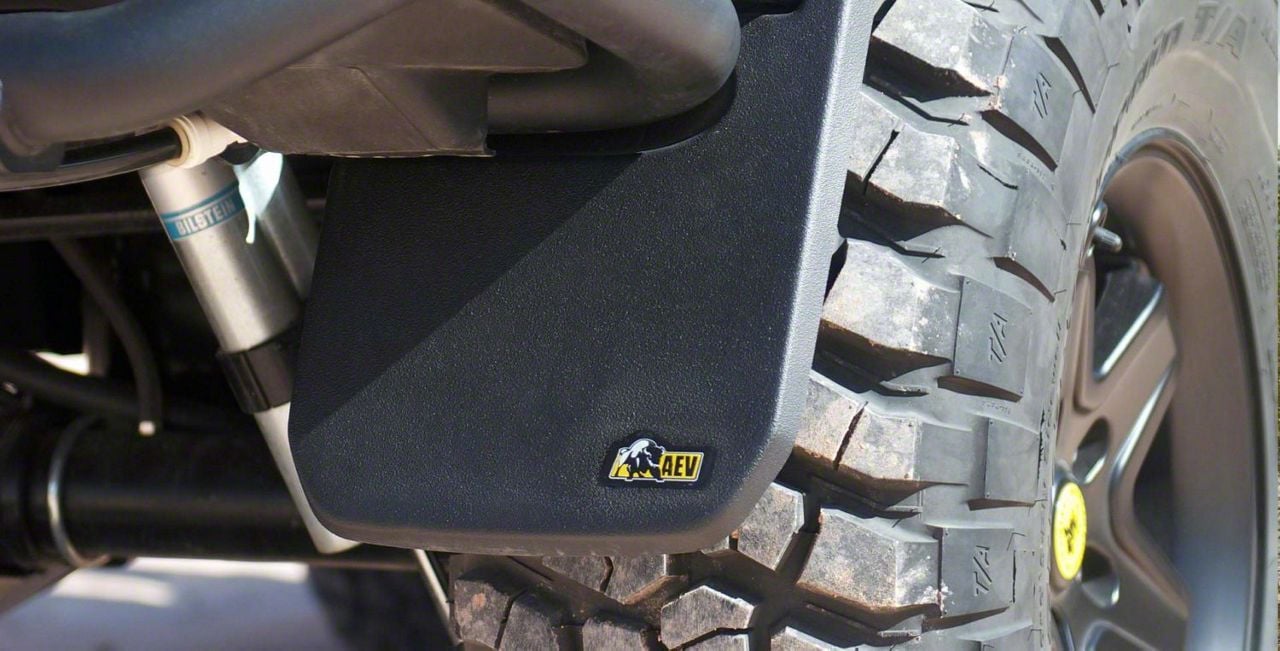 Durable Off-Road Protection. The AEV Splash Guards are engineered to complement AEV and special edition Jeep Wrangler JK rear bumpers, offering additional protection from mud, debris, and trail grime. Perfect for daily drivers and off-road adventurers alike, these splash guards keep your rear bumper and body panels cleaner while maintaining a rugged appearance.