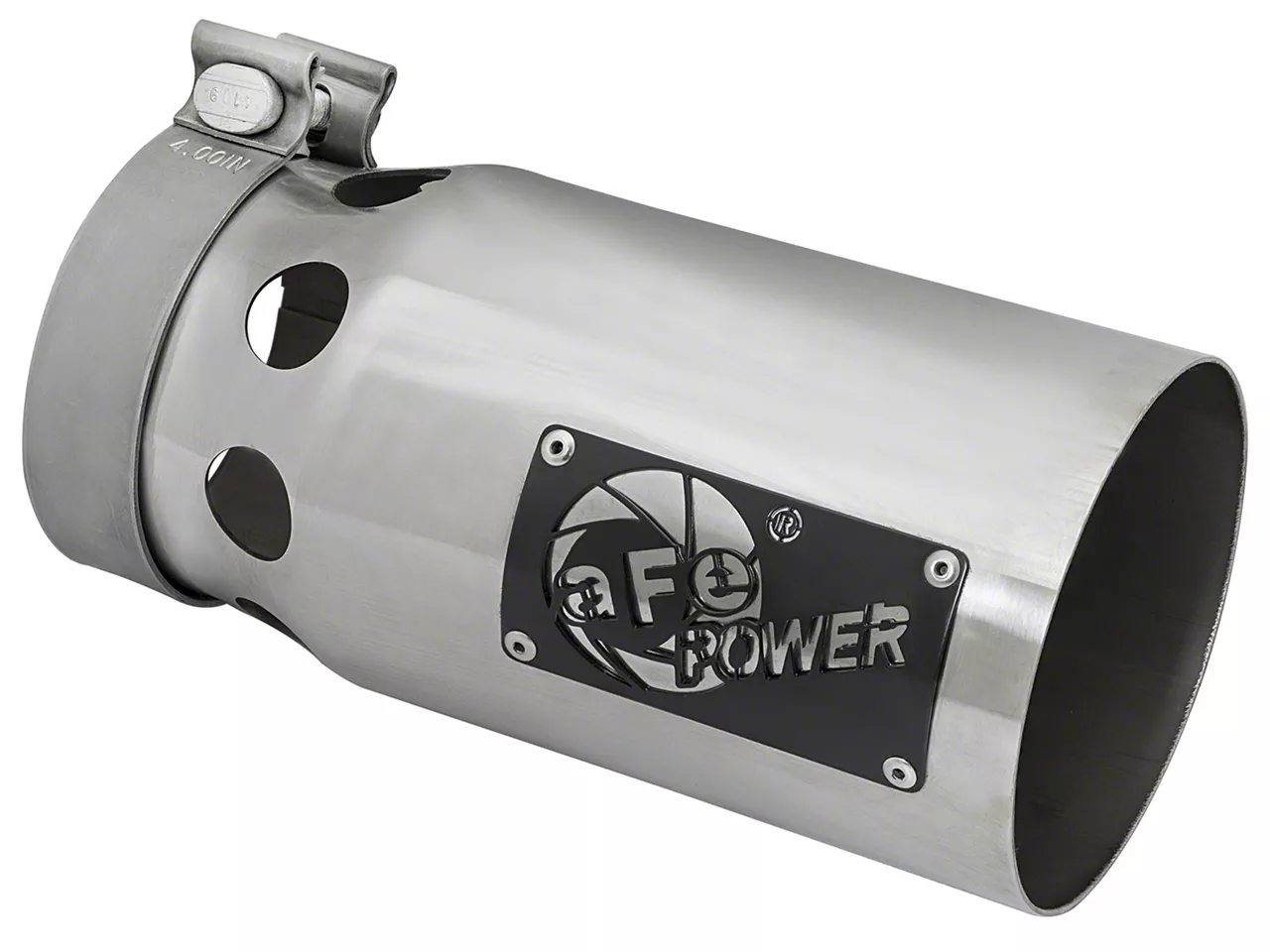 Withstand the Heat. This AFE 5-Inch Rebel XD Series Polished 409 Stainless Steel Exhaust Tip; 4-Inch Connection serves as a beautiful complement to any 4-inch exhaust system. The intercooled tip can withstand high temperature thanks to its extraordinary build.
