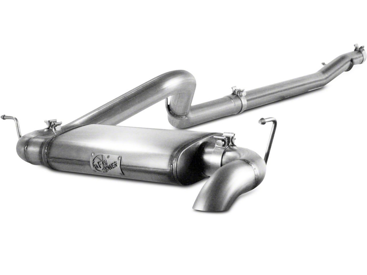 Augmented Performance. The aFe MACH Force XP 3 inch Cat-Back Exhaust system features a free flowing muffler that augments vehicle performance. Your Jeep Wrangler JK will have increased horsepower and torque. The factory exhaust is outflowed by up to 64 percent. The tubing diameter and curve design is effective in increasing air flow.