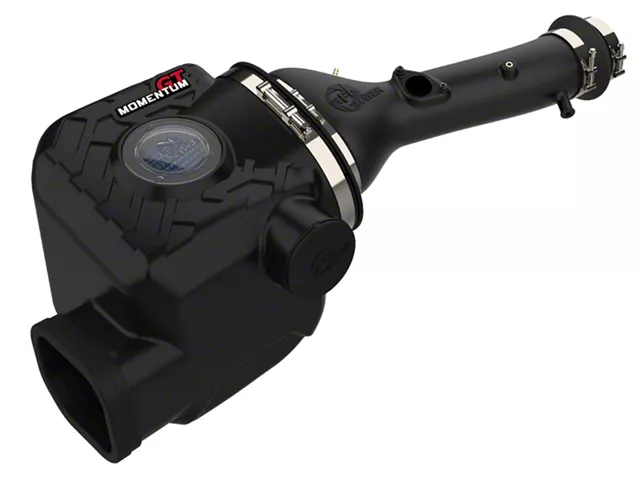 Premium Construction. AFE ensures the high quality of this Momentum GT intake system by using black cross-linked polyethylene for the CAD-designed, roto-molded housing. This 1-piece air box features a built-in sight window for easier filter inspection without disassembly. The intake tube is of high-quality plastic, dyno-tuned, roto-molded construction for a more efficient airflow. An auxiliary scoop is also included to bring in more air, but can be intentionally blocked using the urethane plug for cold weather applications.