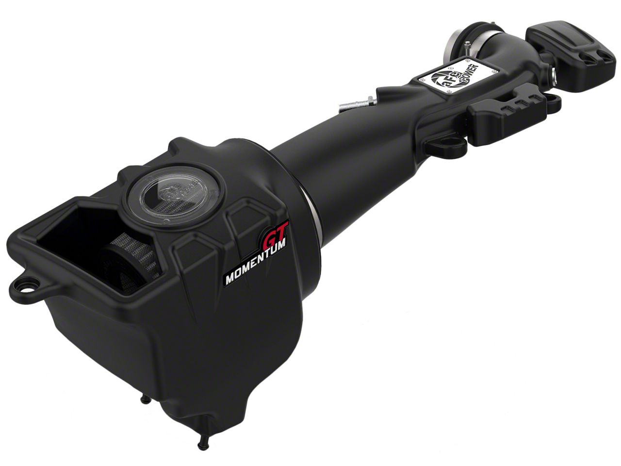 Heavy-Duty Construction. This Momentum GT air intake system includes CAD-designed and dyno-tuned intake tube that is roto-molded to achieve maximum power gains. It does so while maintaining a perfect fit. On the other hand, the sealed one-piece housing is made from black cross-linked polyethylene and is designed to retain the same water fording height as the factory intake system. The premium stainless steel T-bolt clamps offer durability and great corrosion resistance.