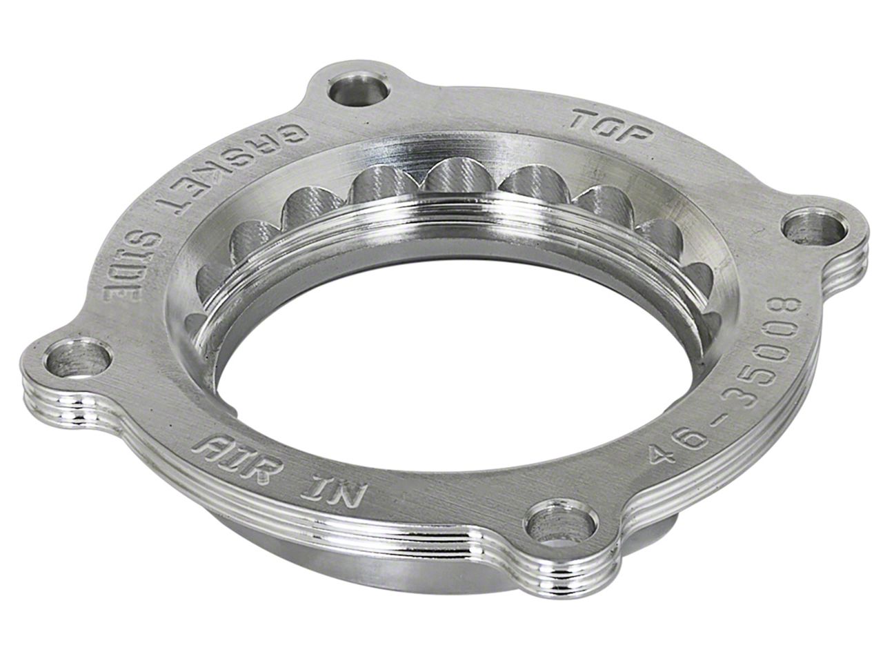 Reduces Intake Whistle. AFE's Throttle Body Spacer features an unique Serrated/Helix combination design that helps to reduce intake whistle that is usually common with Helix design Throttle Body Spacers.
