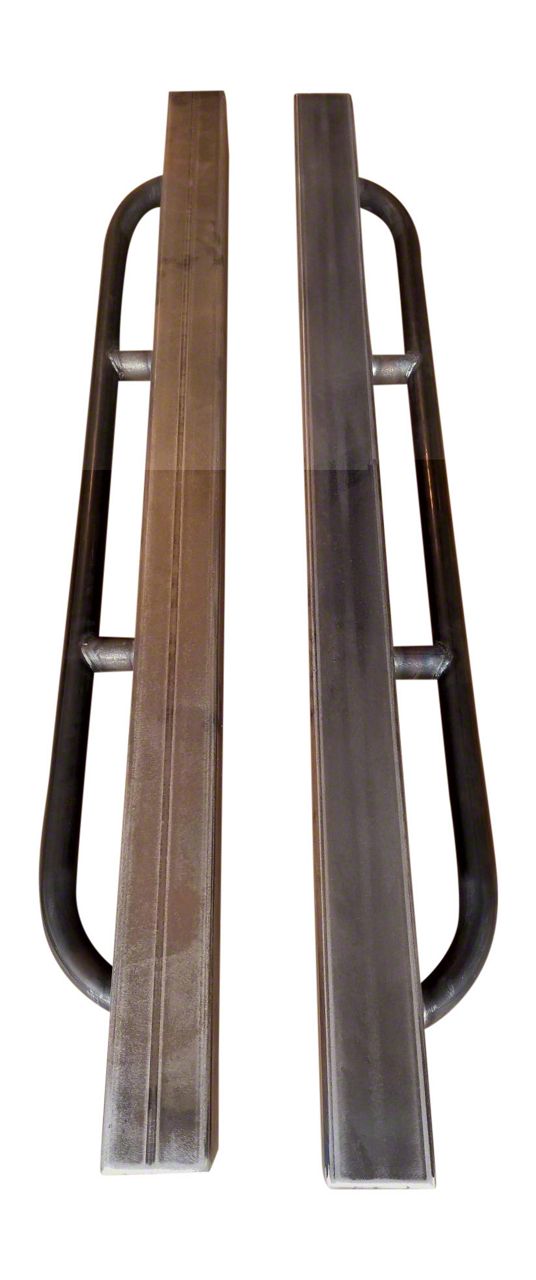 Construction and Appearance. Constructed from robust 4 x 4-inch metal tubing, these rock sliders are presented in bare metal, ready to be painted or coated. This allows for easy customization to match or contrast with the Jeep’s exterior. Hand-built in the USA, each set of sliders showcases exceptional craftsmanship and rugged aesthetics.