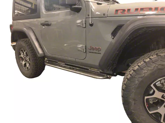 Trail-Ready Body Protection. The Affordable Offroad Bolt-On Rock Sliders; Bare Metal are built to defend your 2018–2026 Jeep Wrangler JL 2-Door against rocks, stumps, and trail obstacles. Designed for serious off-road use, these sliders add rugged protection while doubling as a functional step for easier entry and exit.