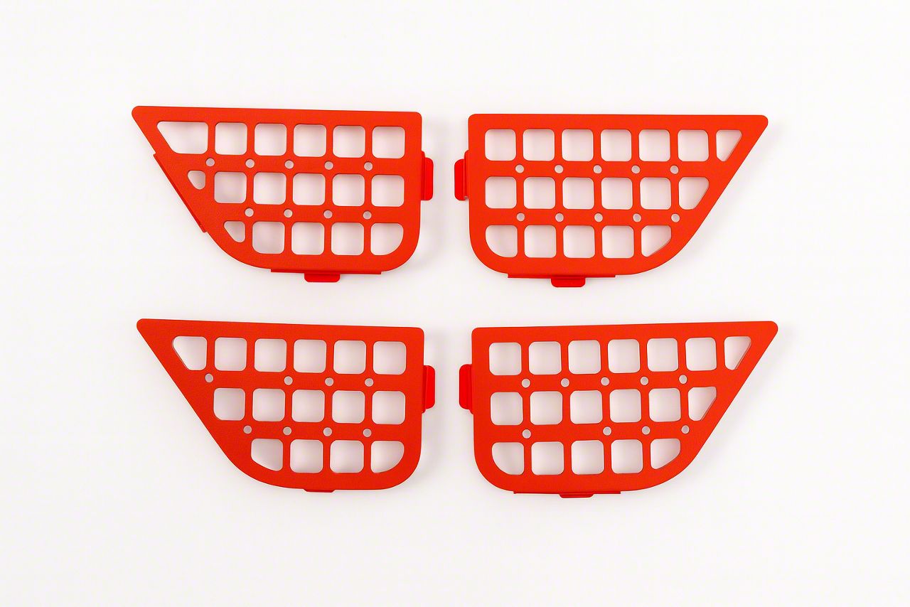 Application. The Affordable Offroad Door Pocket MOLLE Panels; Front Only; Black fit 2007-2018 Jeep Wrangler JK models.