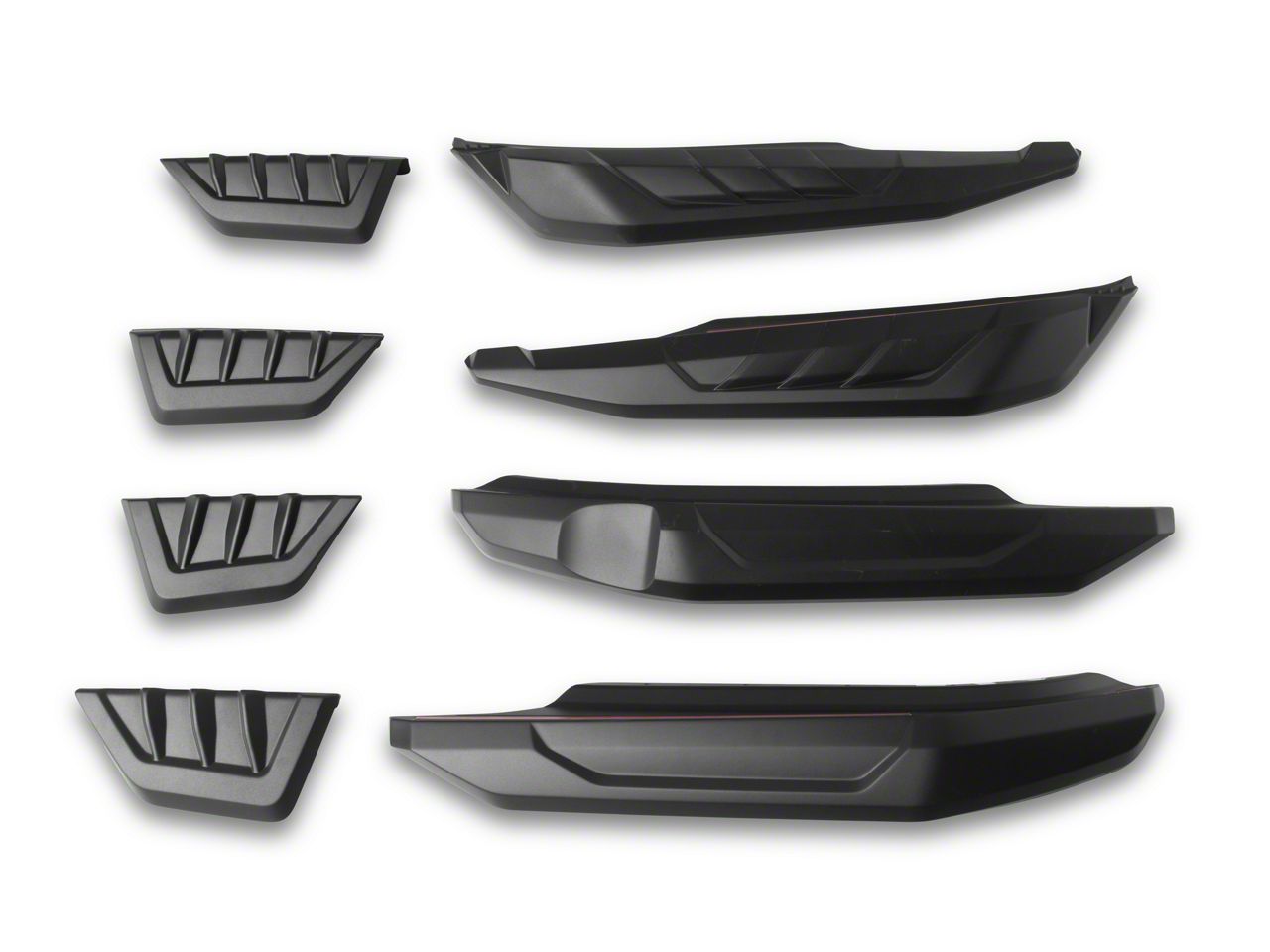 Satin Black Finish Cover. The Air Design Racer High Top Fender Flares not only provide an impressive 6.49-inch front and rear tire coverage for enhanced protection against road debris - but also boast a stylish satin black finish to elevate your vehicle's aesthetic. Furthermore, this set of 4-pieces comes complete with integrated mud flaps and daytime running lights (DRL) for added safety and a sleek appearance.