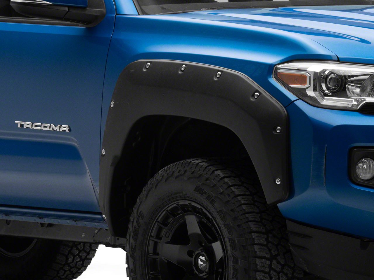 Application. These Satin Black Air Design Super Bolt Fender Flares fit all 2016 to 2023 Toyota Tacoma models.