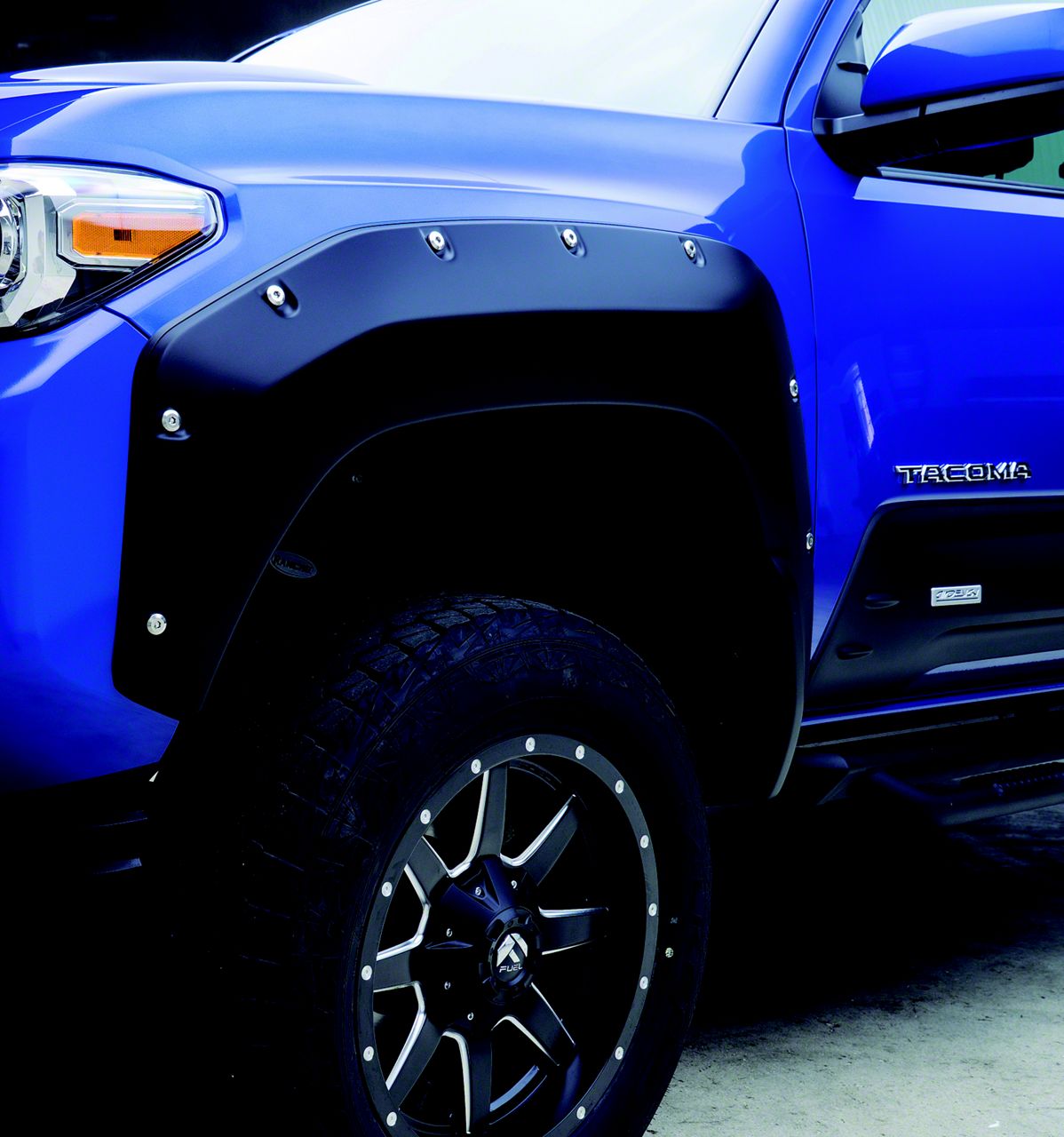 Application. These Unpainted Air Design Super Bolt Fender Flares are created to fit 2016-2023 Toyota Tacoma models.