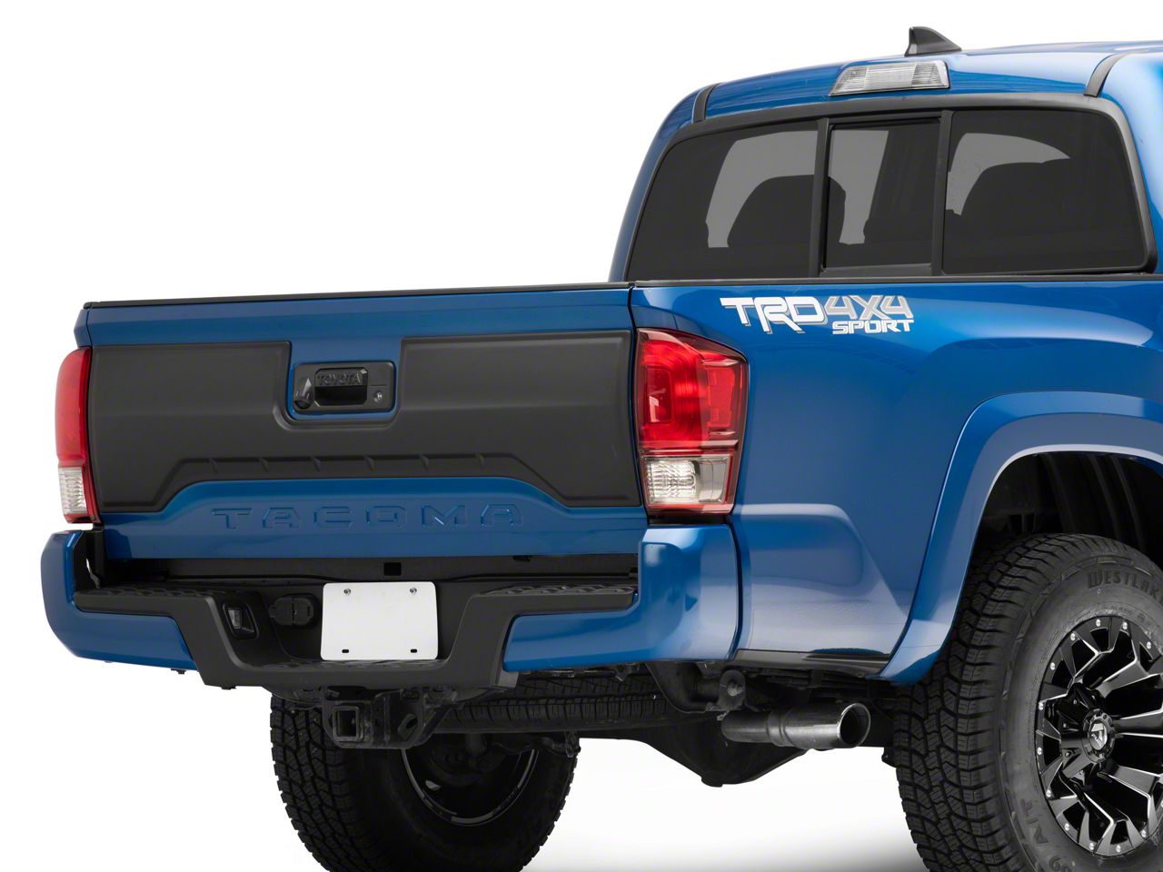 Greatly Improves. The Satin Black Air Design Tailgate Applique instantly boosts your truck’s appeal by making the rear end look sportier. The design complements your Tacoma’s style perfectly, giving it a jaw-dropping rear-end that will surely turn heads. And since it applies directly to the tailgate, it helps keep the factory paint pristine for a longer time.