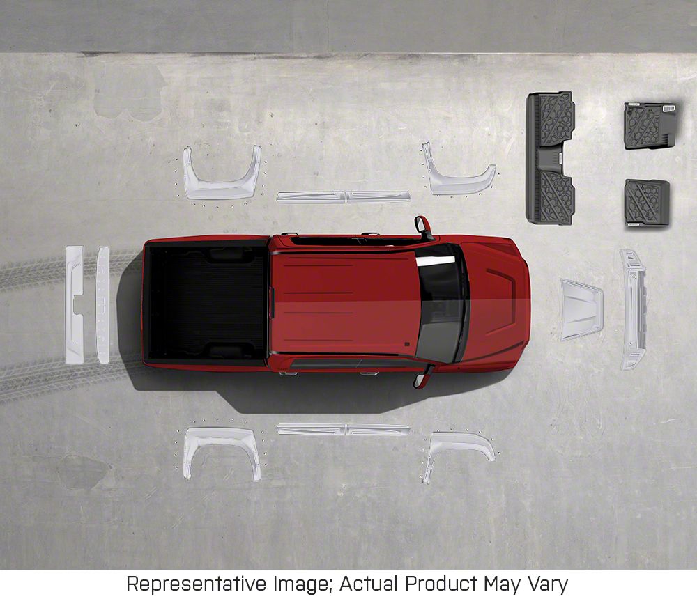 Design. The Off-Road Styling Kit provides a complete aesthetic overhaul for the Tundra, enhancing its visual appeal and road presence. This kit includes several meticulously designed components such as front and rear bumpers, side skirts, and a tailgate spoiler, all crafted to give the vehicle a more aggressive and customized off-road look. Each element is designed to complement the others, creating a cohesive and unified appearance that transforms the Tundra into a standout vehicle, ideal for owners looking to make a bold style statement.