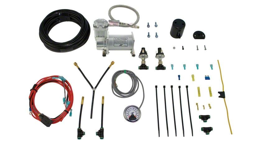 Includes. The Air Lift LoadController Dual Path Heavy-duty On Board Air System includes all the hardware needed for installation including a heavy-duty compressor, wiring harness, air lines, gauge, customizable gauge, flush mount or insert into any 2 1/8-inch gauge pod. The compressor can be easily mounted to your vehicle's frame and attached to an air line that runs to your vehicle's air springs.