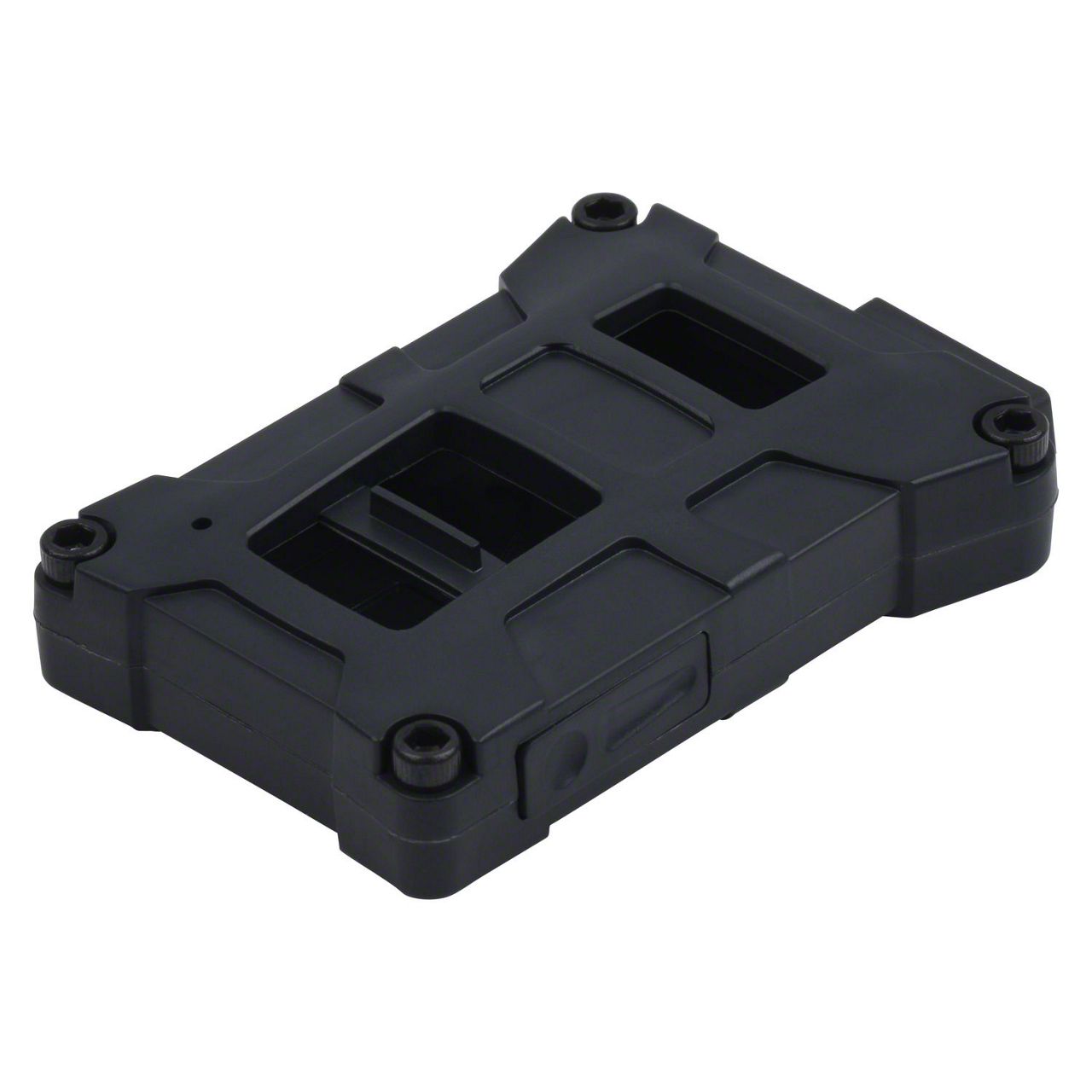 Construction and Appearance. This key fob is injection molded from high strength, impact resistant PC-ABS plastic for increased toughness. It features a two-piece design that is bolted together using socket head cap screws, providing a sturdy and rugged assembly. The finish is a very dark gray color known as Underground, giving a subtle yet refined look.