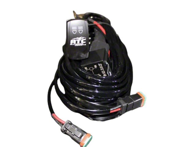 Versatile and Convenient. Illuminate your off-road adventures with the All Terrain Concepts Dual Pod Light Wiring Harness, a versatile solution designed for universal applications. This harness comes equipped with a convenient rocker switch, allowing for easy control of your lighting setup. Safety and durability are enhanced with a fully encased inline fuse, protecting your electrical system from potential overloads.