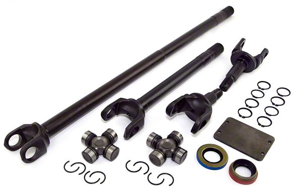 Specs. This kit from Alloy USA includes two axle halves, the front passenger side and front driver side section, plus the necessary hardware, including U-joints and full circle clips. Forged out of 4340 Chromoly alloy steel that is 30 percent stronger than factory 1040 steel axles, these axles have the robustness to stand up to all kinds of punishment, springing back into shape after severe torqueing rather than shattering. Heat-treated, tempered, and induction hardened, these axles are magnetically inspected for cracks before sale to ensure top quality. The splines are extra heavy duty and cold-rolled to make them tougher than machined splines. Note that this kit does not contain an ARB locker, and is either fitted to an existing locker or one bought separately.