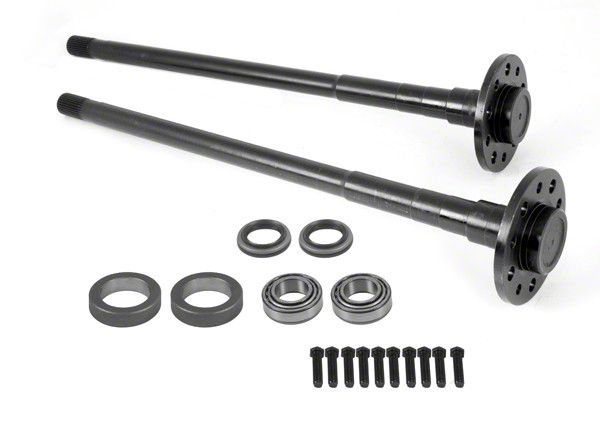Specs. Alloy USA's rear axle shafts gets your rig moving! The shafts are made from a very strong but lightweight 4140 chromoly material and have 30 cold rolled splines for a total of 35 to 40 percent more strength then stock. The shafts have a dual lug pattern which allows more wheel options. The two sizes provided are 5 by 4.5 inches and 5 by 5.5 inches. This kit includes both axle shafts each measuring 37.5 inches long, 1/2 inch thread wheel studs, bearings, and seals for proper installation and a completed job. This kit comes with Alloy USA's 10 year shaft warranty. Don't let weak stock axles get in your way when you up the power on your TJ.