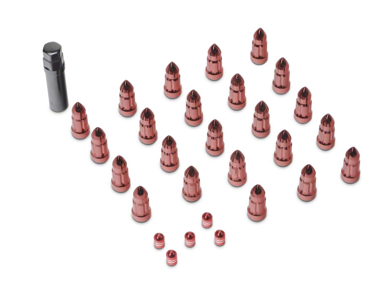 Attractive Off-Road Styling. Although your wheels may look aggressive, a rusty set of lug nuts is enough to ruin the entire rim outlook. Alloy USA Red Bullet Style Lug Nuts feature a bullet-style design, complete with a glossy red powder coat finish that will let your Jeep stand out.