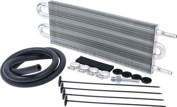 Universal coolers reduce operating temperature of the fluid, extend life of the transmission and provide better performance. Use as a stand alone cooler or as an auxiliary unit to increase cooling capacity of a stock system. Increased cooling is recommended when using a high stall converter, or if the vehicle is used for towing. Coolers have 3/8" barbed fittings and include rubber hose, clamps and mounting kit.