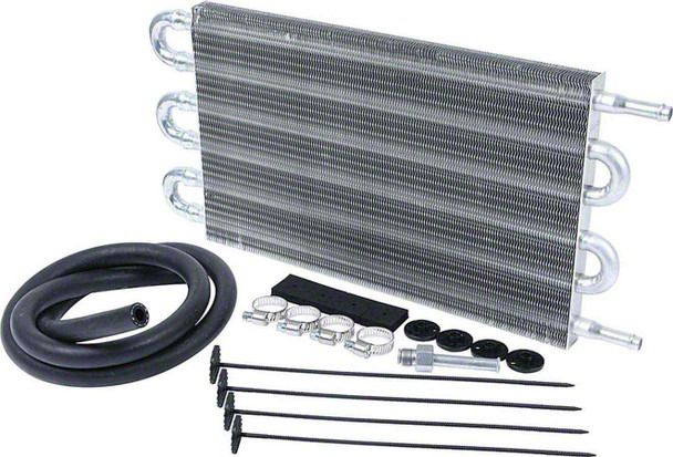 Universal coolers reduce operating temperature of the fluid, extend life of the transmission and provide better performance. Use as a stand alone cooler or as an auxiliary unit to increase cooling capacity of a stock system. Increased cooling is recommended when using a high stall converter, or if the vehicle is used for towing. Coolers have 3/8" barbed fittings and include rubber hose, clamps and mounting kit.
