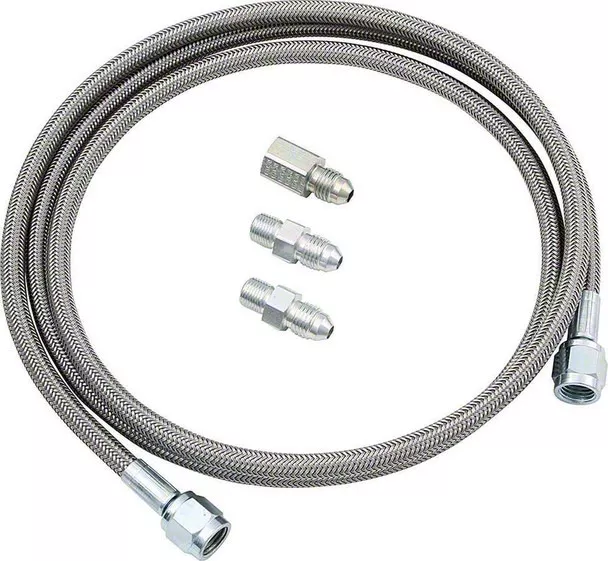 Gauge Line Kit - 4 AN - 36 in Long - 4 AN Female to 4 AN Female - Fittings Included - PTFE - Braided Stainless - Mechanical Pressure Gauges - Kit