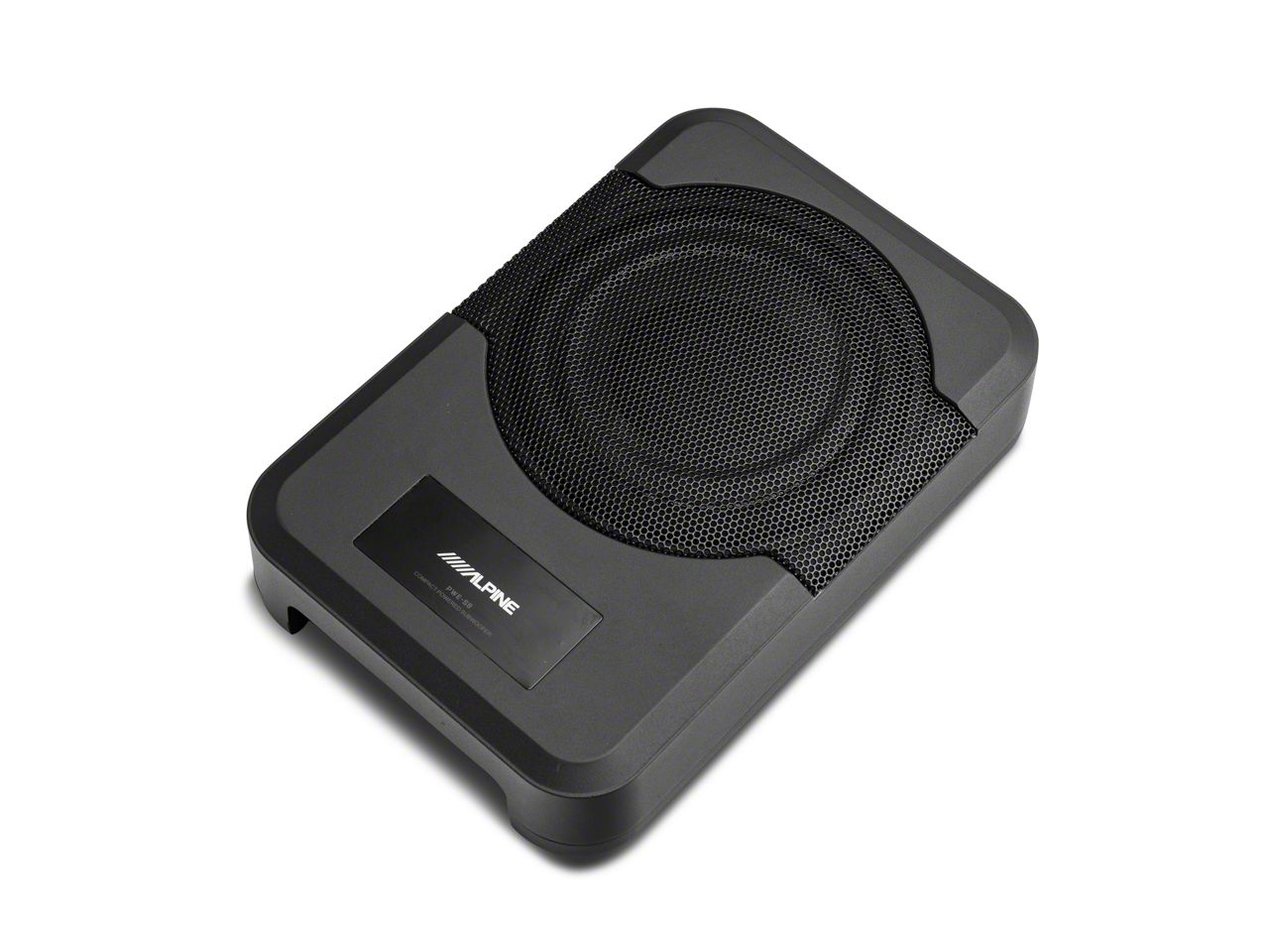 Complete Subwoofer Upgrade. The Alpine 8-Inch Compact Powered Subwoofer System offers a deep and accurate bass that perfectly complements your Jeep Wrangler. This features an 8-inch sub that is powered by a built-in, 120-watt amplifier to give your JK an upgraded sound system. This compact subwoofer mounts under the seat and includes a plug-and-play wiring harness for easy connection to a factory or aftermarket radio.
