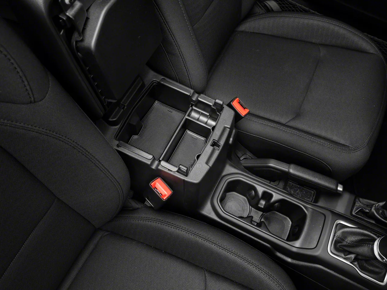 Organized Storage. The RedRock Arm Rest Storage Box creates more usable storage space in your JT's center console for small items. This Storage Box features a useful 3-compartment design to separate items, such as your sunglasses, smartphone, loose change and more.