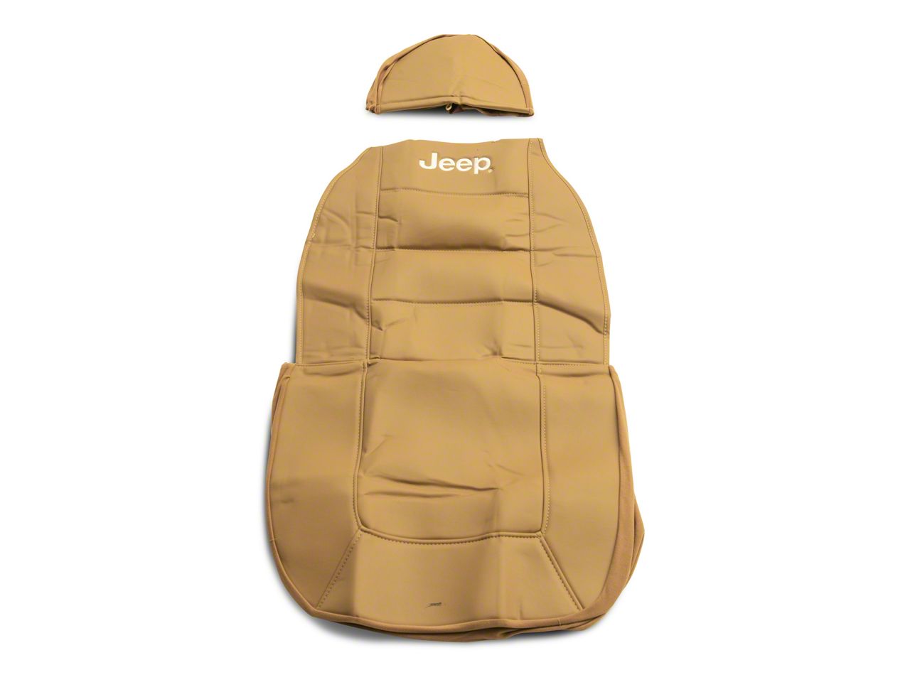 Sideless Seat Cover with Jeep Logo; Tan (Universal; Some Adaptation May Be Required)