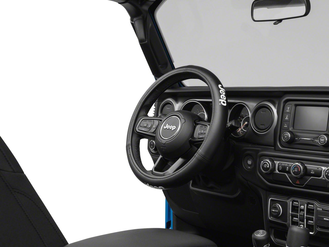 Application. The black Jeep Logo Speed Grip Steering Wheel Cover fits all 2020-2026 Jeep Gladiator JT models.