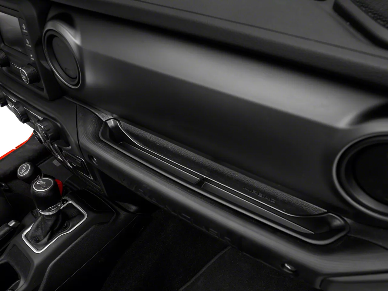 Extra Storage. The RedRock Passenger Side Grab Handle Storage Tray creates usable storage space on your JT's dash for small items. The Tray features a useful, 2-compartment design to separate items, such as your sunglasses, smartphone, loose change or more.